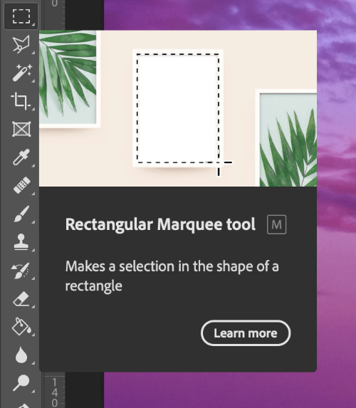 To actually use one of these manual tools, simply select the appropriate tool from the toolbox and then click and drag in the main document window to begin creating a selection marquee.