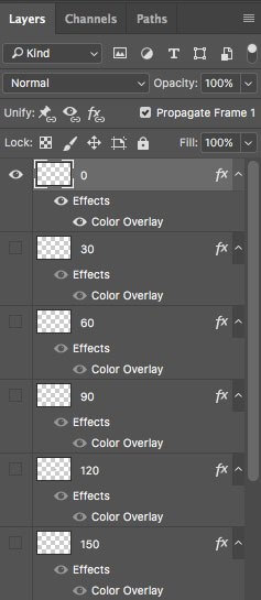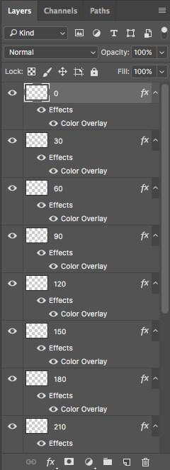 As I want to have an animation that rotates through each 30-degree angle, I am going to rotate the last 4 layers created by 30 degrees. You should now see something similar to the below graphic.