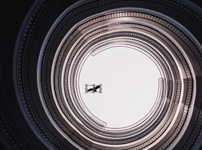 Step 1: Open the background images for your repeating GIF in Photoshop. I have a photo of a building, looking upwards into the sky as my background, and a black silhouette of a bird in flight.