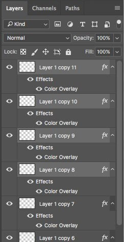 You should now have something similar to the image below with 12 birds (layers) on top of your background layer.