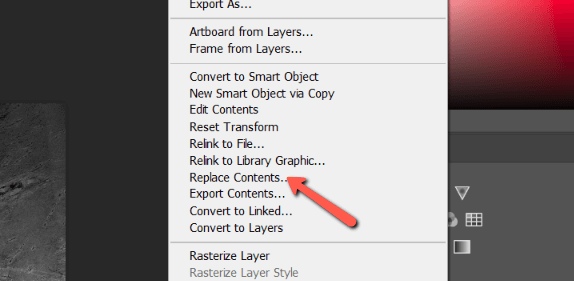 Right-click in a blank space on the texture layer just like you did to convert it to a smart object. This time choose Replace Contents instead.