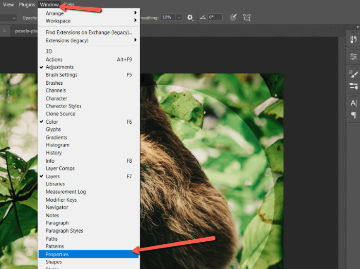 Or you can go to Window in the menu bar and click Properties. Make sure the adjustment layer is selected and you’ll see the correct Properties panel.