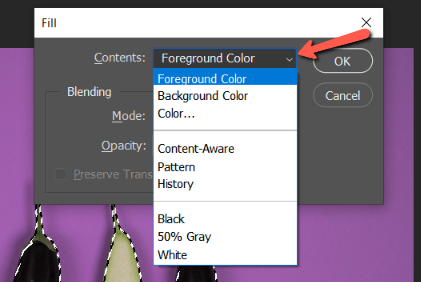 You can choose to remove the pixels and fill the space with the options listed by clicking on the drop-down arrow. For this example, I’ll go with the foreground color, which I have set to white. This is what I get.