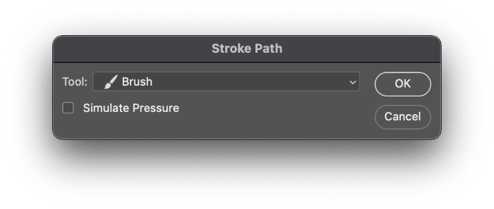 Photoshop will open the Stroke Path dialog box, which allows you to select from an impressive list of brush-based tools, as well as ask it to simulate the effects of a pressure-sensitive drawing tablet.