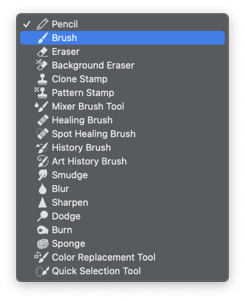 Select the tool you want to use, and click OK. Photoshop will use the settings that were last used with the selected brush tool, or your current foreground color, whichever applies.
