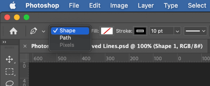 - Step 1: Switch to the Pen tool and set the Path type to Shape.