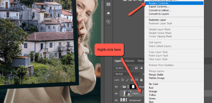 Right-click on the smart object layer in the Layer’s panel and this time choose Replace Contents.