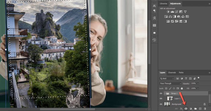 Then press the mask button at the bottom of the Layer’s panel to turn the selection into a mask.