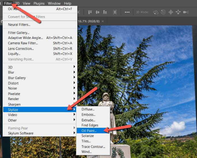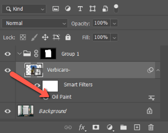 But, look what happens when you add a filter to a smart object. Go to Filter and choose whatever filter you would like to apply. Let’s go to Stylize and choose Oil Paint for this image.