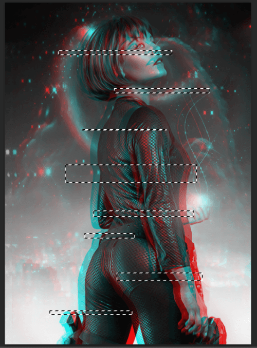 Click and drag to create rectangular sections across the image. Hold down the Shift key to make more than one selection. Vary the sizes of your rectangles and place them at random positions.