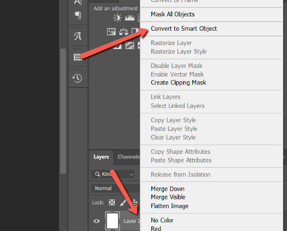 Right-click on the white layer and choose Convert to Smart Object. We’re going to add a filter effect and converting to a smart object first allows us to come back and make adjustments later.