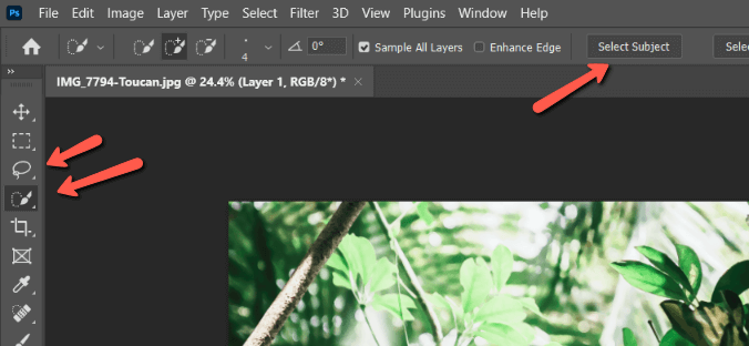 First up, we need to tell Photoshop what part of the image we want to outline. To do that, let’s separate the subject from the background.