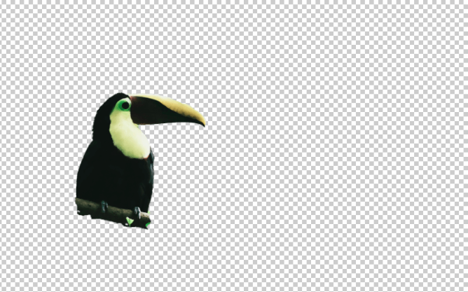 Hide the background layer by pressing the icon that looks like an eye to the left of the thumbnail. You’ll see the toucan there by himself.
