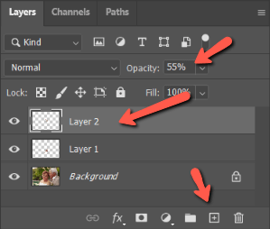 Another method is to put a blank new layer on top. To do this, press the New Layer button at the bottom of the Layers panel. It looks like a square with a plus sign inside.