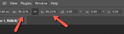 Instead, you can type the exact size you want as a percentage of the original height and width in the boxes up in the Options bar.