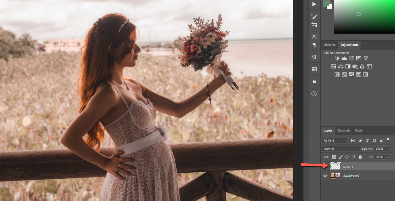 In this image, I selected the bouquet of flowers and have duplicated it to a new layer.