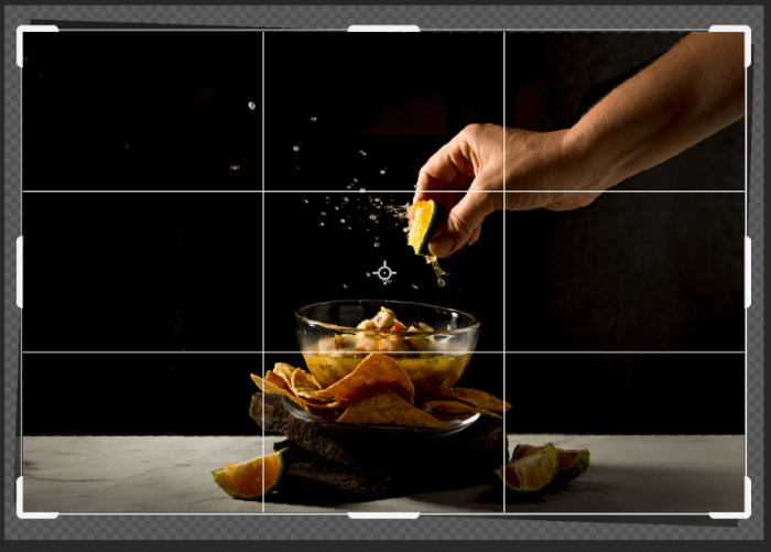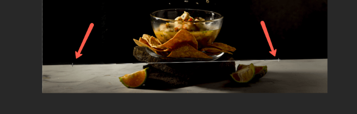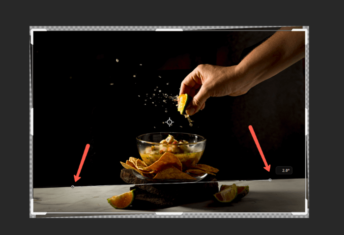 If you don’t want to draw the reference line, you can also just use the handles on the crop tool to straighten the image. Hover just outside of the crop marquee border and you’ll see the cursor change to a double-ended arrow with a 90-degree bend.