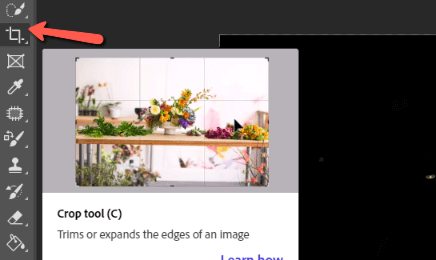 Older versions of Photoshop didn’t have this trick, but now a handy straighten tool is built right into the crop tool. To use it, select the Crop Tool from the toolbar on the left or hit C on the keyboard.