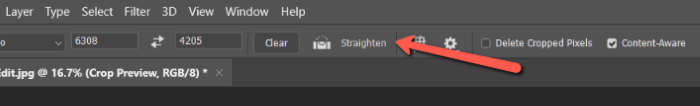 To use the straighten tool, click Straighten up in the options bar at the top of the screen.
