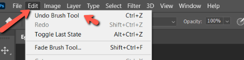 In this case, I used the brush tool, so it shows Undo Brush Tool.