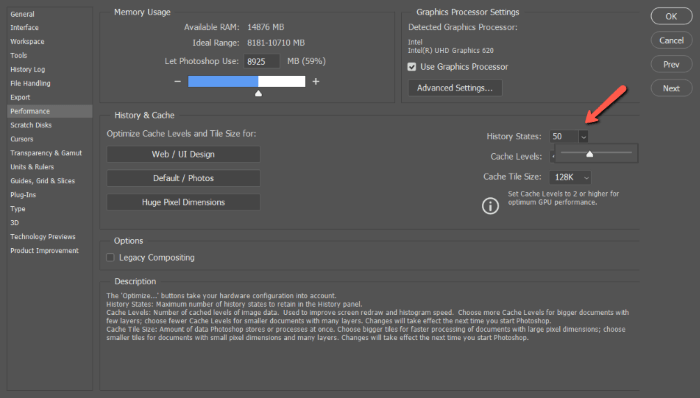 Keep in mind that working with more states requires more memory. If Photoshop starts to lag after you increase the number of states, try dropping it back down.