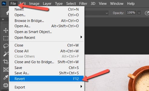 I can do this by going to File in the menu bar and selecting Revert. Alternatively, I can hit F12 on the keyboard.